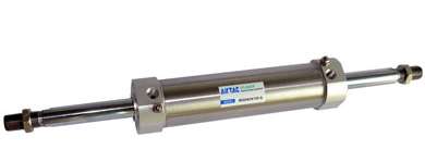 Cilindru pneumatic rotund seria MG este un cilindru cu dubla actiune si franare (amortizare) pe capete, cu bratara (sau fara) magnetica pe piston pentru detectarea cursei de catre senzorii magnetici care se monteaza pe corpul (camasa) cilindrului